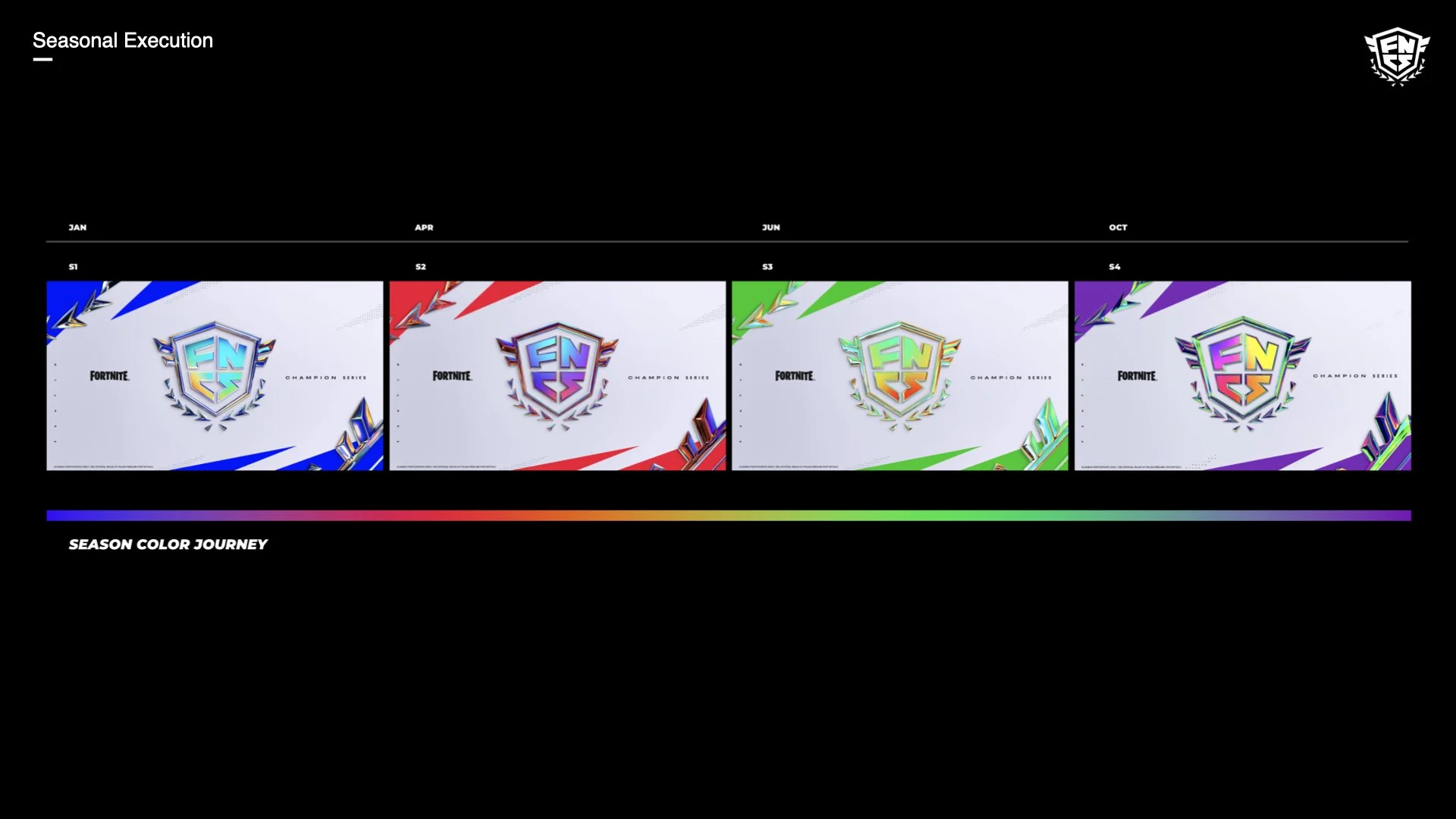 There are 4 seasons per year in the FNCS that each needed to have a slightly different look. We wanted it to feel like a journey using the color spectrum as our guide.