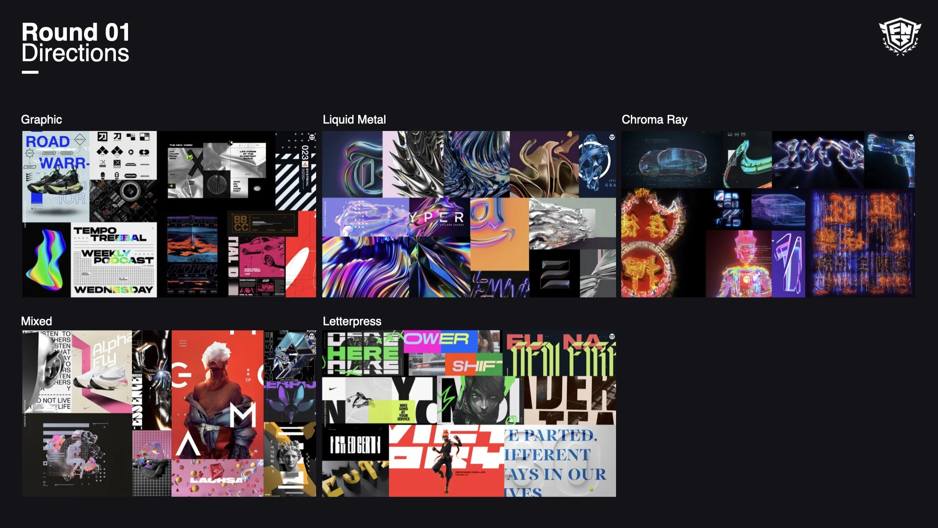 Here’s my design direction that’s a graphic mix of CG elements, dynamic typography and wild motion design that amps the energy up, dynamic compositions and overlapping grid systems.
